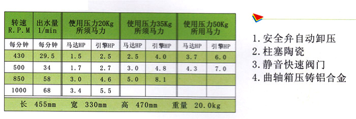 吸水量:31.0~61.5公升 最大压力:50kgf/cm²