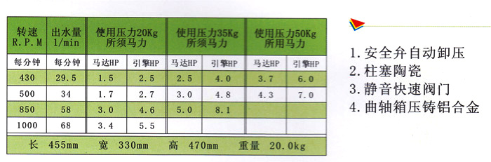 吸水量:31.0~72.5公升 最大压力:50kgf/cm²