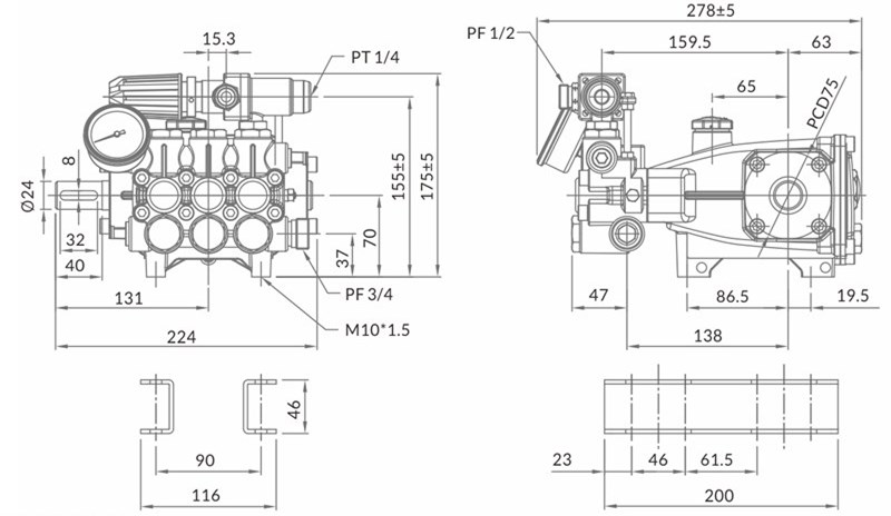 · 柱塞式泵浦:採用鋁合金曲軸箱,精密鍛造曲軸。